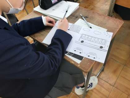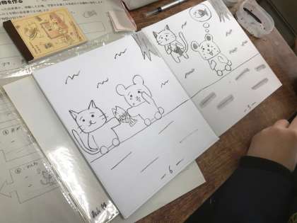 先日は鳥獣戯画を写していましたが、いよいよオリジナルの世界に突入したようで、「絵巻物」を作っています。