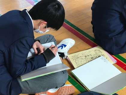 後ろの方に寄せ書きコーナーがあるので、お互いに書き合いっこしていました。