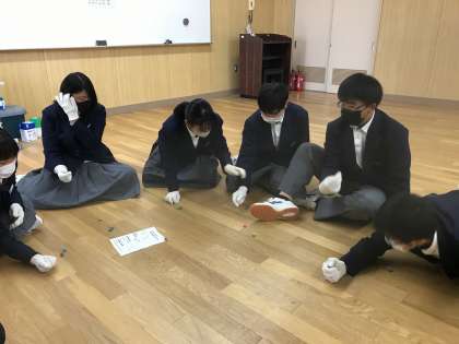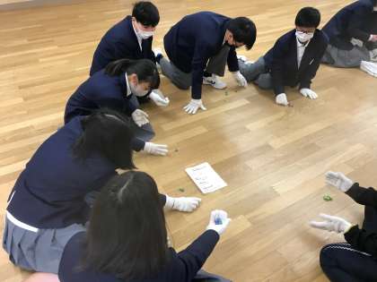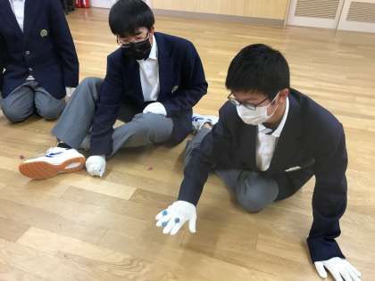中に小さな黒い粒が詰まった小さいプラスチックの玉5個を使います。