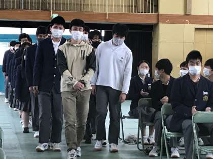 入場完了すると練習とは言え、緊張感と哀愁とともに47期生らしいほのぼの感が感じられます。