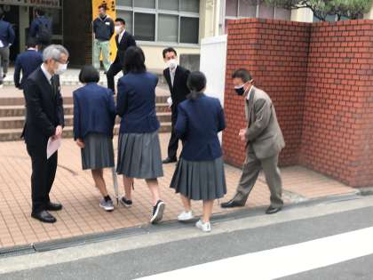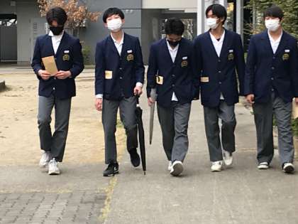 学校に向かってまっすぐ歩いてくる男子グループ、この「Gメン'75」のオープニングのような登校風景も今日で見納めです。