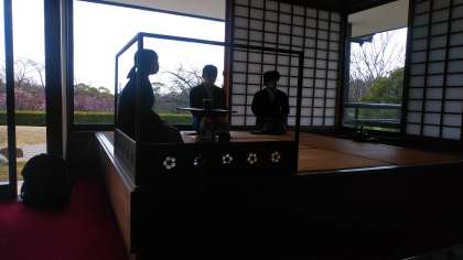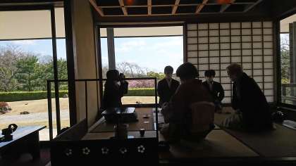日本庭園のお茶室で本格的なお茶席の経験をしました。