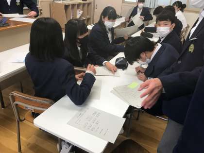 続いて、先だって全校生徒に実施したアンケートについて、全員で手分けして集計作業をしました。