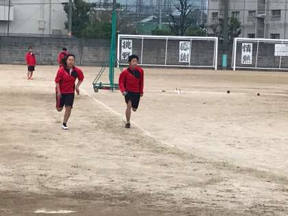 練習終了間際で片付けしているところでしたが、最後にリレーをするという粋な計らいをしていただきました。