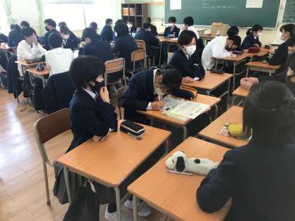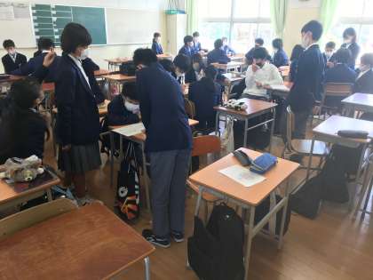 自己紹介カードを書いているクラス、班で何かを決めているクラスといろいろやっています。
