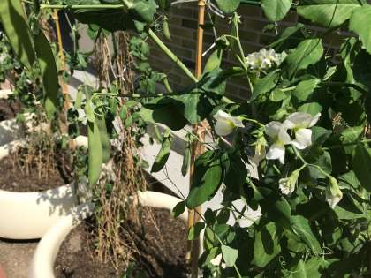 ひまわり学級直営のひまわり農園のグリーンピースが順調に育っています。