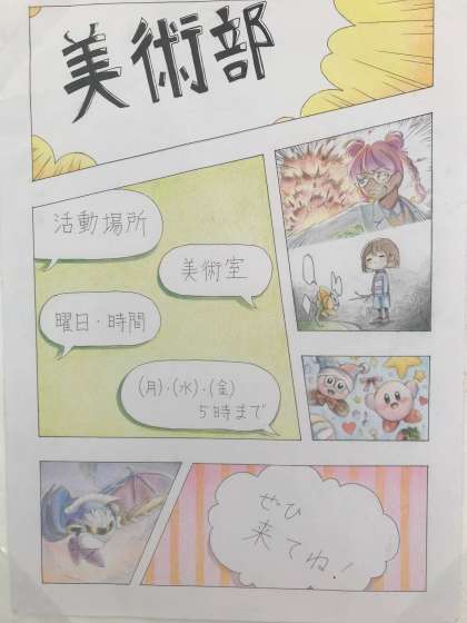 美術部のメンバーの作品のスライドショーを見せてくれました。