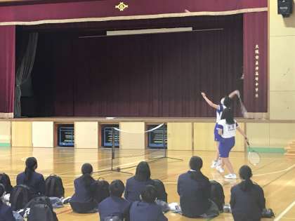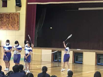 部活動紹介、トリを取るのは、いつも明るく元気な女子ソフトテニス部です。