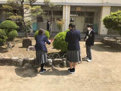今日の目あては「学校の中にいる生物を見つけ、観察し、記録する」です。