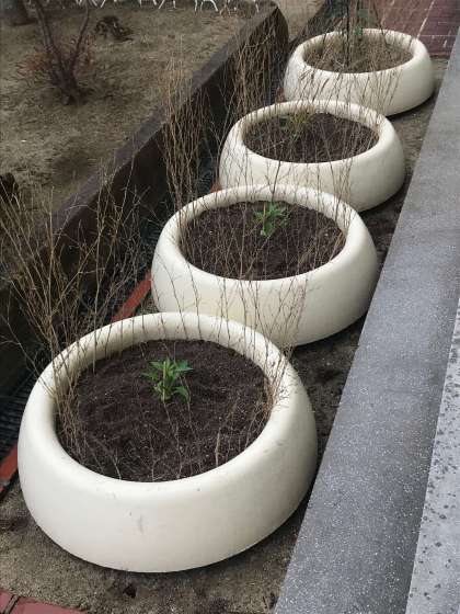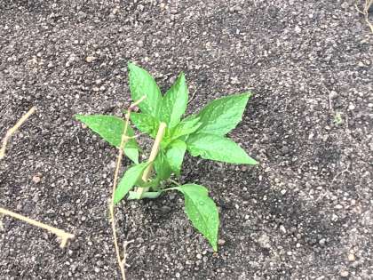 グリーンピースの収穫が終わったので、そこに新しい苗を植えました。