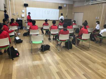 体育委員会は、全体で話し合うことがあるので、広い多目的室で実施しました。