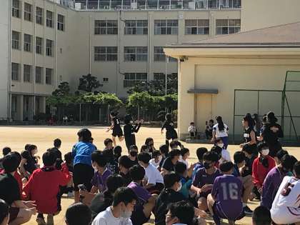 陸上競技部、バスケットボール部、ソフトテニス部、ソフトボール部、卓球部によるリレーです。