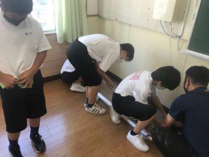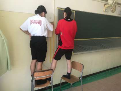 水分補給はこまめに、時にはクーラーのかかっている教室で涼んでもらいました。