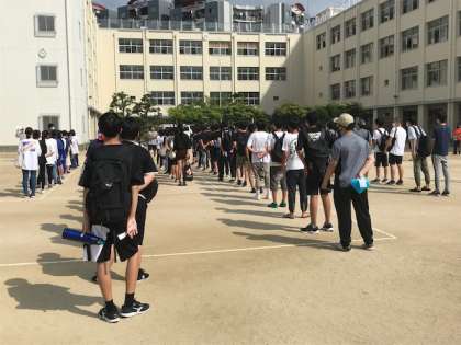 運動場に集合して、諸連絡を受けた後、各チームごとに作業開始です。