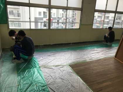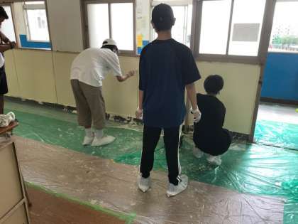 去年、コロナ禍でリボーンができなかったので、2年生にとっても初めての校内ペンキ塗りになります。