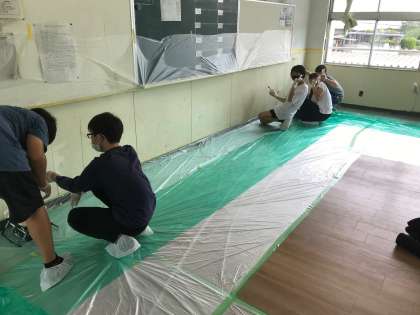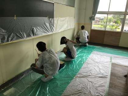 端っこなどローラーの届かないところは刷毛の出番です。