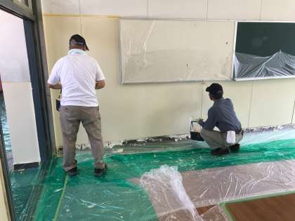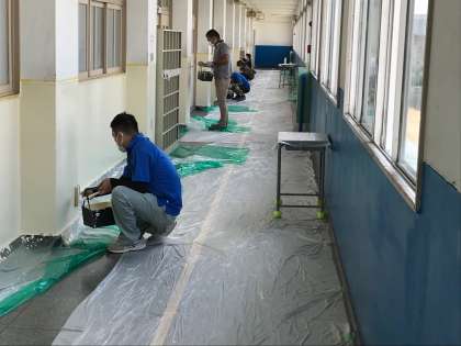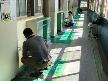 今日は地域・PTA・教職員で生徒の皆さんがしてくれたペンキ塗りの総仕上げをしました。また、大会で平日のリボーンに参加できなかった陸上部の生徒にも参加してもらいました。