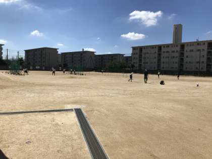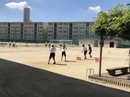 強い日差しに負けず、陸上部とソフトテニス部が活動しています。