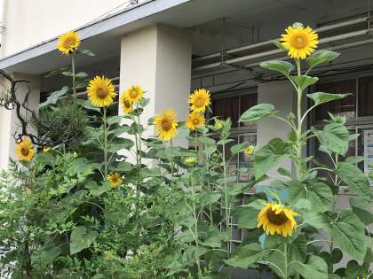 ひまわり農園のひまわりの花の数がぐっと増えました。花を見て美しいと思える平和な日々を大切にしていきましょう。