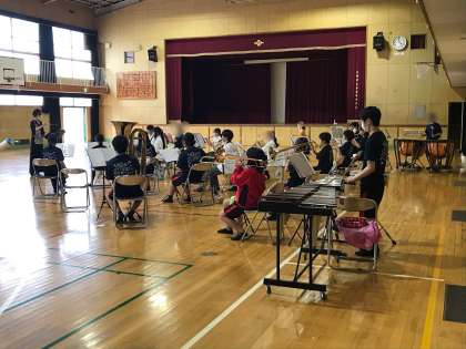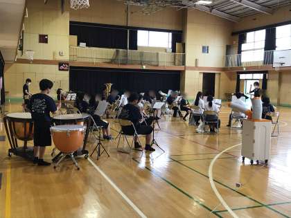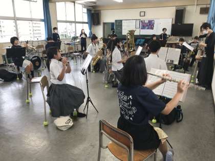 21日(土)の「大阪市立中学校総合文化祭 Aブロック音楽会」で発表する曲をみんなで演奏し、できばえ・改善点の確認と仕上げをしています。