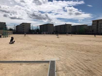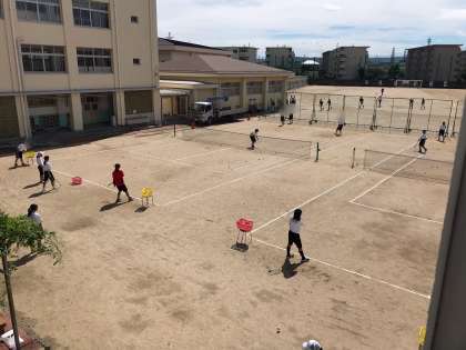 ということで、女子ソフトテニス部と野球部が運動場で練習しています。