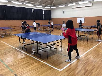 隣の武道場では卓球部が活動しています。3年生が引退したそうで、1・2年生で練習しています。
