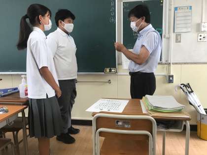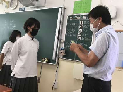 式の後の学活で2・3年生に手渡しました。