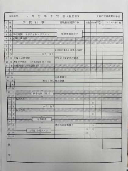 9月の行事予定について(9月3日時点暫定)