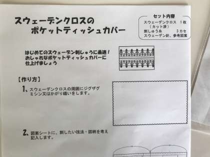 スウェーデン刺繍とは、布の織り目に糸を通して模様を作る刺繍です。「刺繍なんて初めて」という方にお勧めらしいです。