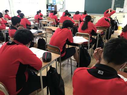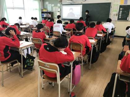 例年ならこういうことは「体育館に集まって学年集会」となるのですが、念には念を入れ、でオンラインで実施しました。