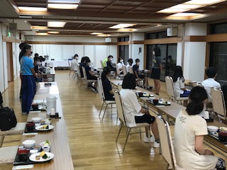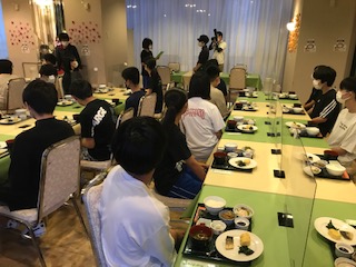 お世話になったホテルセカンドステージの方に代表生徒がお礼を言いました。