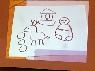 先生があるお題について描いた絵を見て何かを当てる「お絵描きクイズ」です。