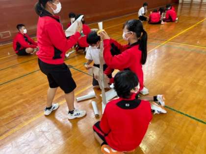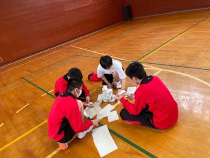 こちらは体育館でチームビルディングです。