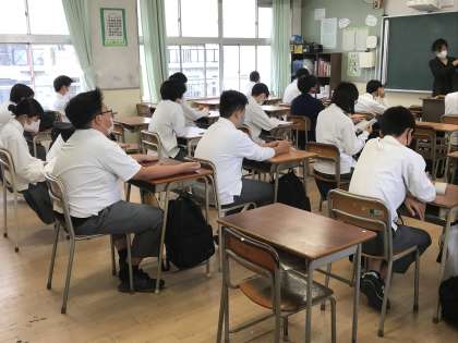 3時間目から各クラス1時間ずつ、専用タブレットを使ったスピーキングテストをします。