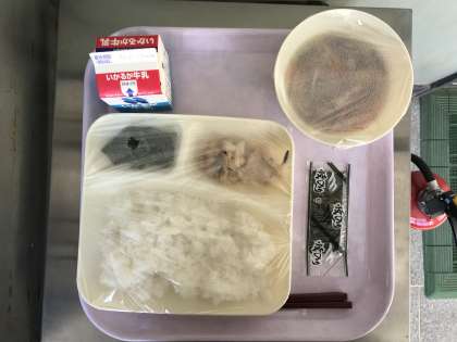 今日のメニューは「鶏肉のゆず塩焼き・ほうれん草のおひたし・ソーキ汁・焼き海苔・ご飯・牛乳」の6品です。