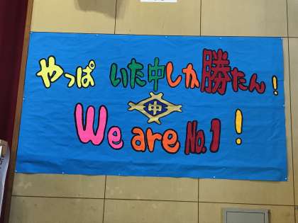 舞台横に掲示された巨大スローガン、カッコいいです。