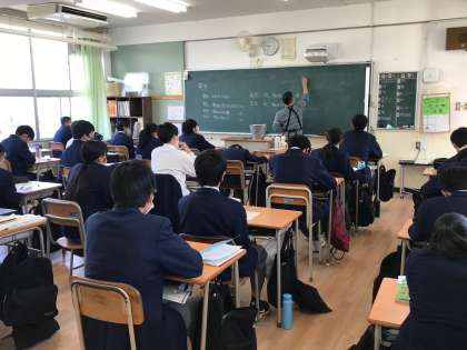 写真上)2年の技術の授業です。