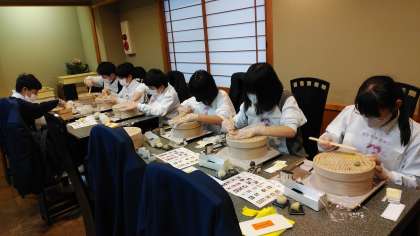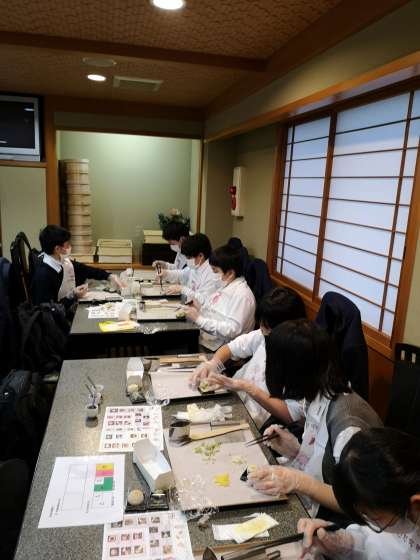 11日(土)に1年14名、2年4名の計18名で、京都 西京極の「八つ橋庵とししゅうやかた」という体験施設に行って来ました。