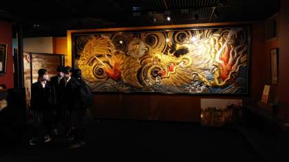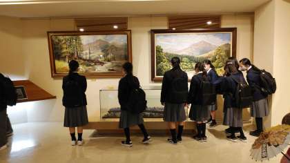 昼食後、併設されている刺繍(ししゅう)美術館の作品を鑑賞して、お土産物購入をしました。