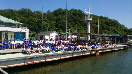 予定通り13時に入所式を行いました。代表生徒が挨拶をして、施設の方からのオリエンテ−ションがありました。その後部屋に荷物を置いて、ヨットハーバーに移動しました。ヨットハーバーで、カッター訓練についての説明を受けました。