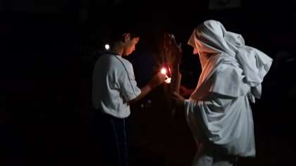 火の神が登場して、キャンドルファイヤーが始まりました。火の神に扮していたのは一体誰でしょう?