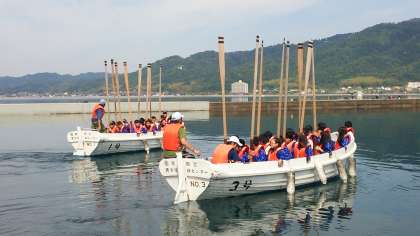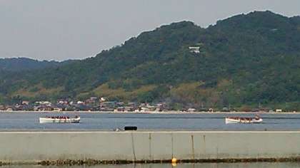 カッター訓練二日目です。朝の集いの時は曇っていましたが、晴れて暑くなってきました。今日は、防波堤の沖に出て2艇で競争します。