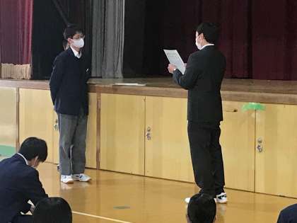 先生方からみんなのために学年のために学校のために力を発揮してくれた生徒に表彰状を渡しました。