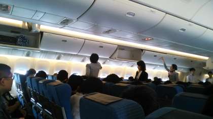 伊丹空港についてから約1時間で、ようやく飛行機に乗り込みました。間もなく離陸します。