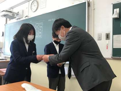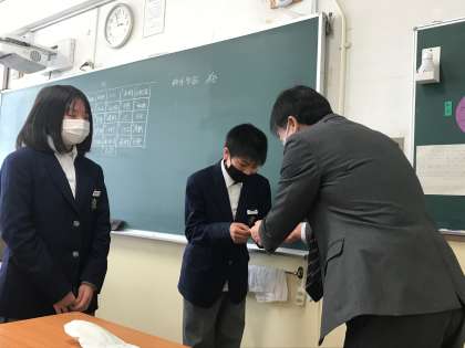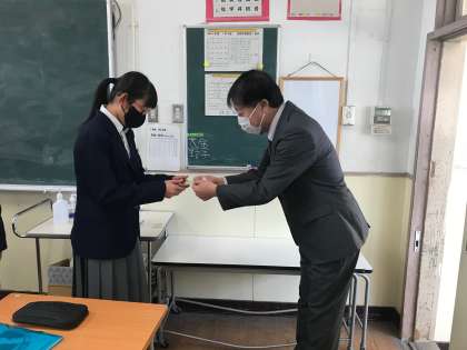 今日は1年生の衛生委員さんに普通救命講習修了証を渡しに行きました。