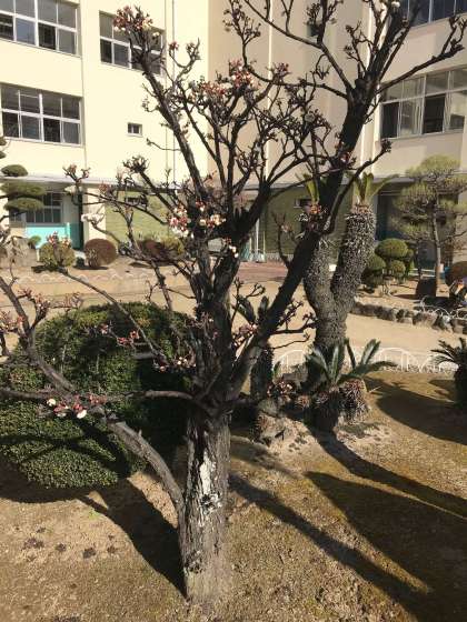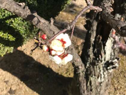 「中庭の白梅がきれいですよ」と剪定(せんてい)をしている管理作業員さんが教えてくださいました。