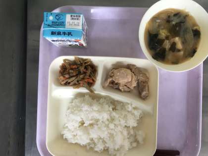 今日のメニューは「鶏肉の醤油マヨネーズ焼き・味噌汁・金平牛蒡・ご飯・牛乳」の5品です。