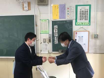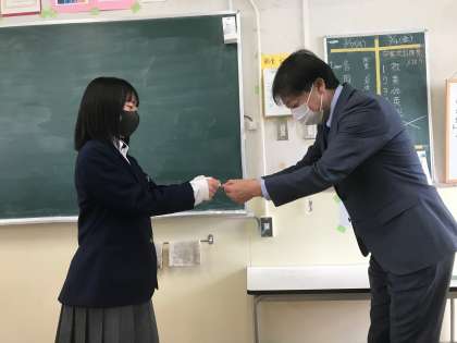 続いて3年2組男子、3年3組の女子に修了賞を授与しました。