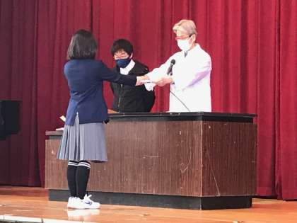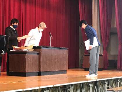 授与後はセンターの階段からレッドカーペットの上を進みます。