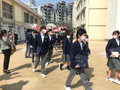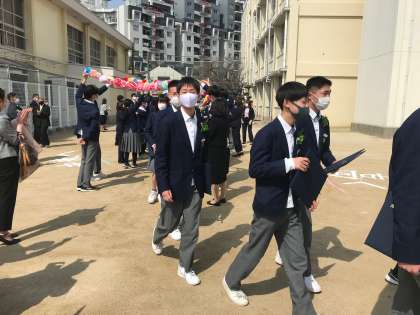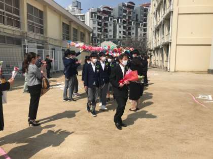 花道の花のアーチは1年生がお祝いに作ってくれたものです。